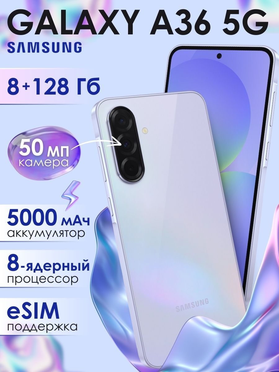 Сбалансированный смартфон с премиальными возможностями Galaxy A36 сочетает в себе стиль, производительность и доступность. Его 6.7-дюймовый Super AMOLED-экран с частотой обновления 120 Гц и яркостью до 1200 нит подарит вам удовольствие от просмотра фильмов, игр и серфинга в интернете. Камера с оптической стабилизацией (OIS) и поддержкой видео 4K в Super HDR позволит запечатлеть каждый момент в высочайшем качестве. А благодаря мощному процессору Snapdragon 6 Gen 3 вы сможете легко справляться с любыми задачами — от работы в приложениях до мобильных игр. Тонкий и лёгкий корпус, защита Gorilla Glass Victus+ и быстрая зарядка 45 Вт делают Galaxy A36 идеальным выбором для тех, кто ценит комфорт и надёжность.