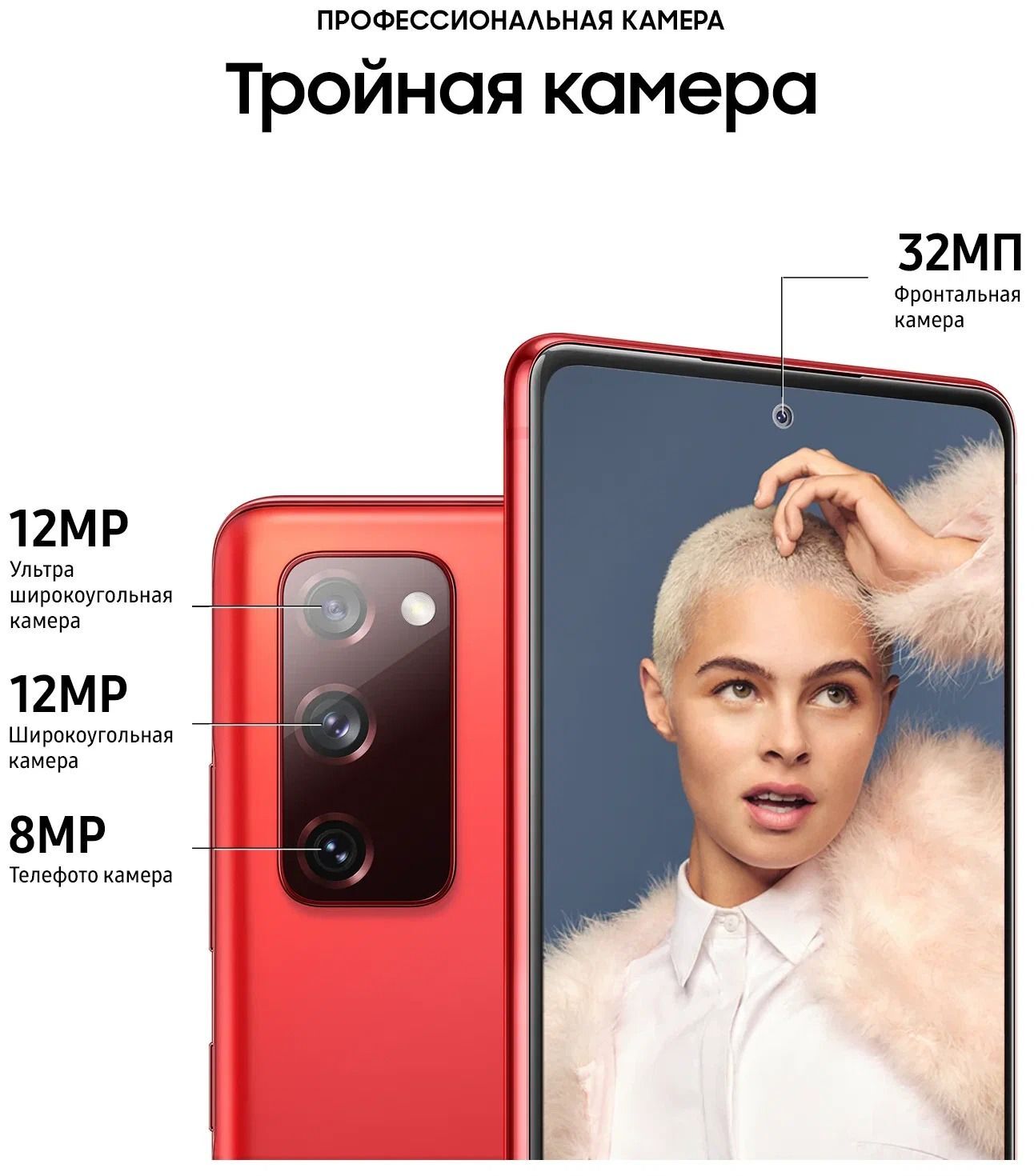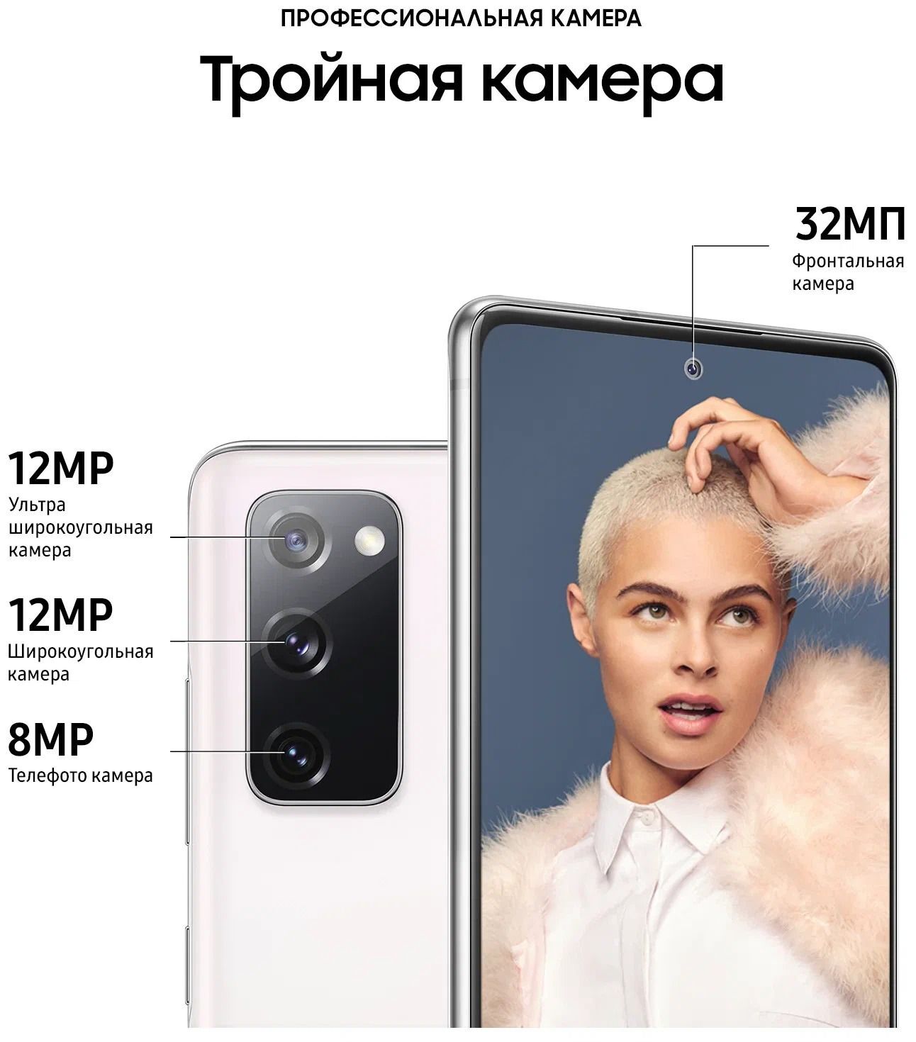 Дизайн Samsung Galaxy S20 FE заслуживает особого внимания: плавные линии и закругленные грани корпуса превосходно сочетаются с матовой текстурой задней панели. Выбирайте любой цвет из шести доступных, чтобы ваш смартфон максимально отражал ваш стиль и соответствовал вашему вкусу.