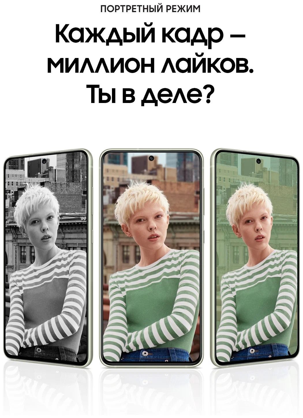 Студийное качество портретов теперь доступно простым нажатием. Портретный режим на ИИ анализирует сцену, лицо, освещение и обеспечивает получение отличных портретов, сразу готовых для размещения в социальных сетях. А использование эффектов придает каждой фотографии нужное настроение.