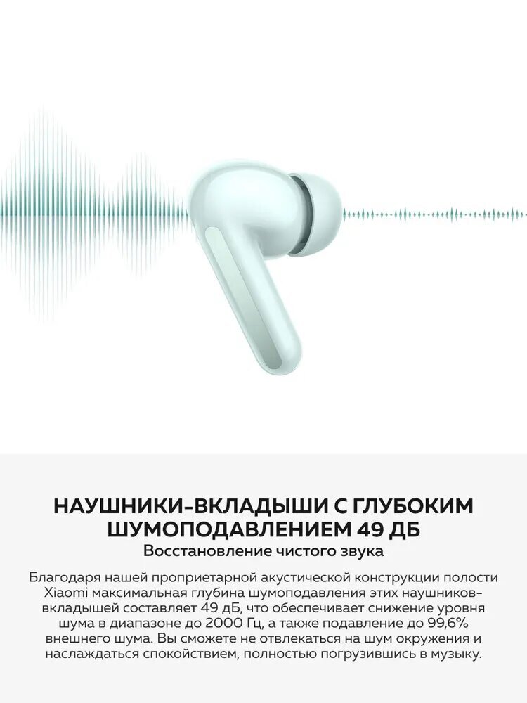 Беспроводные наушники Xiaomi Redmi Buds 6 – насыщенный звук и комфорт в каждой детали. Акустическая конструкция с двумя излучателями : обеспечивает кристально чистый звук благодаря большой диафрагме 12,4 мм с титановым покрытием и пьезоэлектрическому керамическому элементу 5.5 мм. Гибкая настройка : наушники беспроводные Xiaomi предоставляют 4 встроенных варианта звука эквалайзера – стандартный, усиление баса/голоса/высоких частот. Также доступна настройка собственного варианта. Звуковая среда Sound ID : позволяет настроить звуковые эффекты в соответствии со слухом и вкусом каждого человека. Объемный звук 360° : алгоритм звуковых эффектов HRTF создает ощущение полного погружения в звучание для захватывающего аудиовизуального опыта. Шумоподавление до 49 дБ : Xiaomi наушники беспроводные позволяют навсегда забыть про внешние шумы благодаря технологии шумоподавления, эффективно блокирующей до 99,6% окружающего шума. Доступно несколько режимов шумоподавления : глубокое, сбалансированное и слабое. 3 режима отслеживания внешнего шума : позволяют вам оставаться в курсе событий вокруг даже во время прослушивания музыки. Двойной микрофон с подавлением шума ветра : Xiaomi наушники позволяют общаться без помех даже при скорости ветра до 9 м/с благодаря функции подавления шума ветра на базе искусственного интеллекта. Наушники Xiaomi беспроводные предлагают до 42 часов автономной работы с подзарядкой от кейса и функцию быстрой зарядки. Визуальный контроль уровня заряда : световой индикатор, расположенный на зарядном футляре проинформирует вас о состоянии заряда батареи. Защита от воды и пыли : IP54. Bluetooth 5.4 : обеспечивает стабильное подключение к устройствам. Беспроводная гарнитура Xiaomi Redmi Buds 6 – это сочетание передовых технологий и современного дизайна, обеспечивающее высокое качество звука и максимальный комфорт.