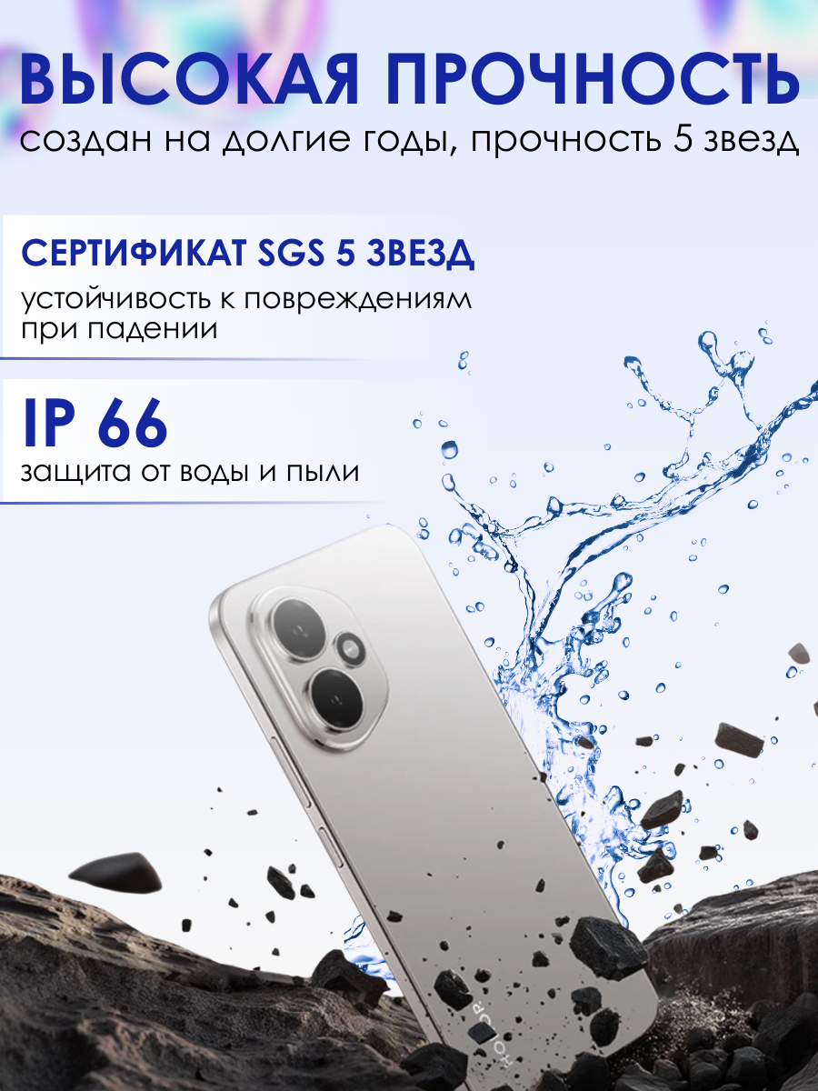 HONOR 400 защищен от влаги и пыли по стандарту IP66, а также прошел сертификацию прочности SGS 5 звезд, подтверждающую устойчивость к повреждениям при падениях и ударах.