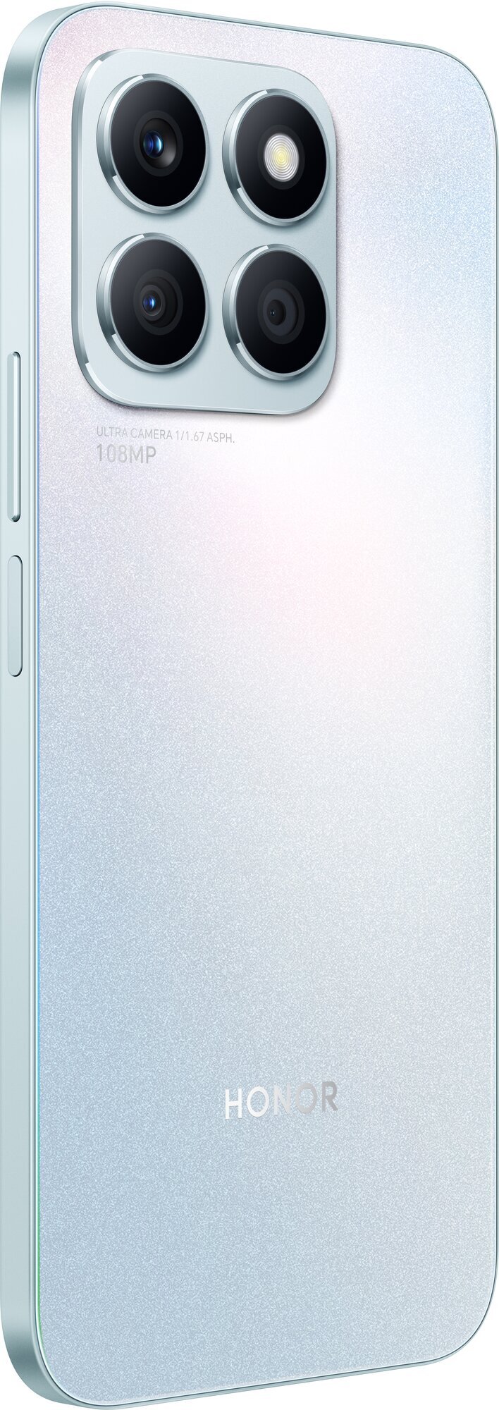 Мобильный телефон HONOR X8b представлен в трех стильных вариантах дизайна. "Полночной черный" для любителей долговечной классики представляет глубокий черный цвет, вдохновленный ночным небом. "Титановый серебристый" - цвет корпуса отливает серебром и обладает благородным блеском. "Благородный зеленый" выполнен из экокожи зеленого цвета и украшен ромбообразным теснением на задней панели смартфона. Все три варианта объединяет легкость и комфорт пользователя при использовании модели, ведь вес смартфона составляет всего 166 грамм, а толщина равна 6,78 мм.