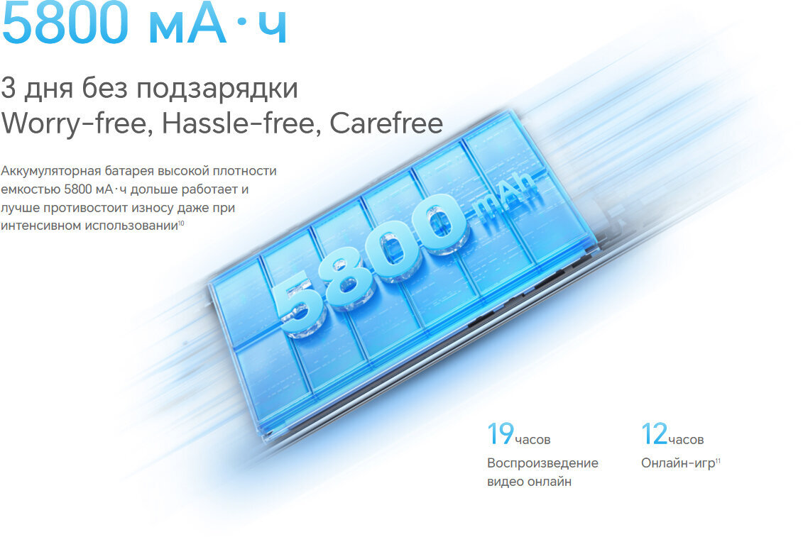 Емкость аккумулятора составляет 5800 мА⋅ч, что обеспечивает продолжительное время работы устройства.