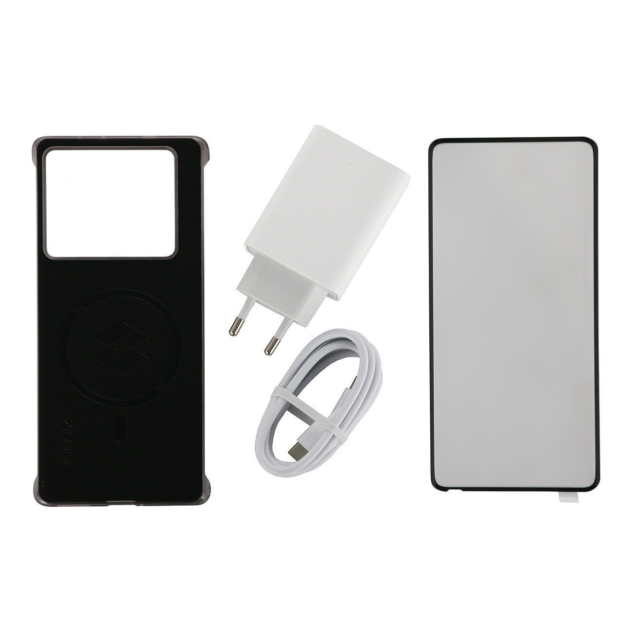 Смартфон Infinix Note 40 Pro+ — высокопроизводительная модель в корпусе цвета Obsidian Black. За счет текстурированной поверхности задней панели устройство комфортно лежит в руке. Модель поддерживает подключение к мобильным сетям стандарта 5G.