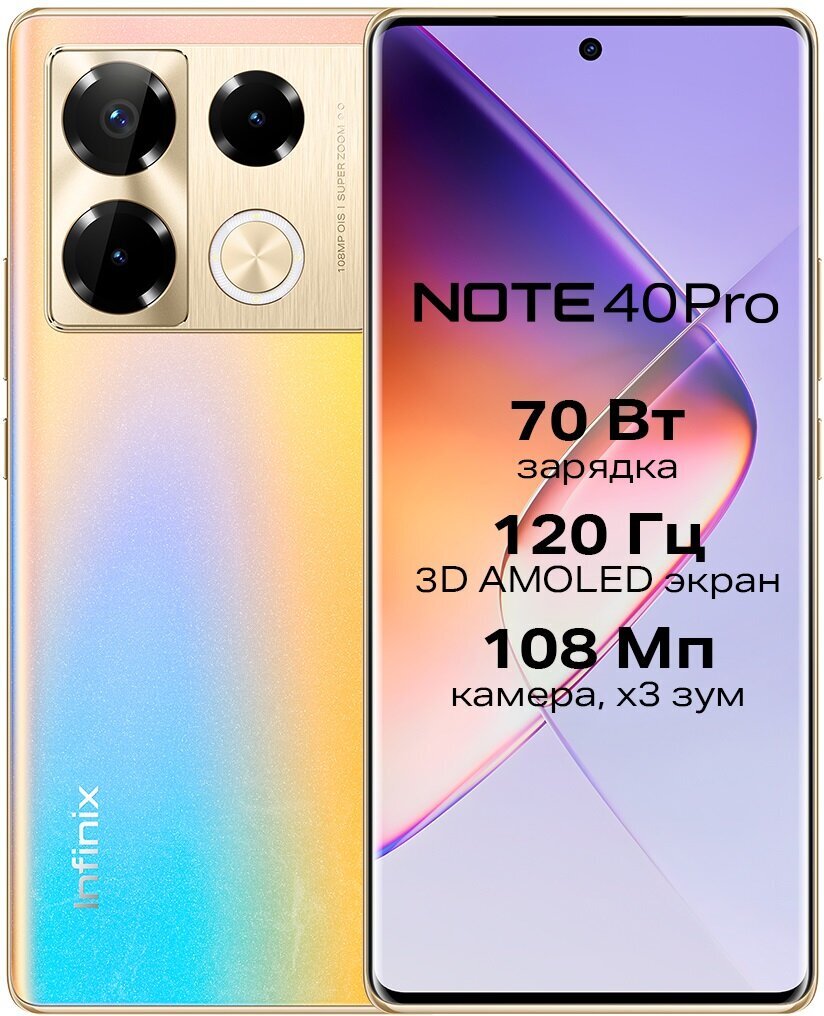 Смартфон Infinix NOTE 40 Pro X6850 256+8 Gb - это мощный и стильный гаджет, который сочетает в себе передовые технологии и современный дизайн.