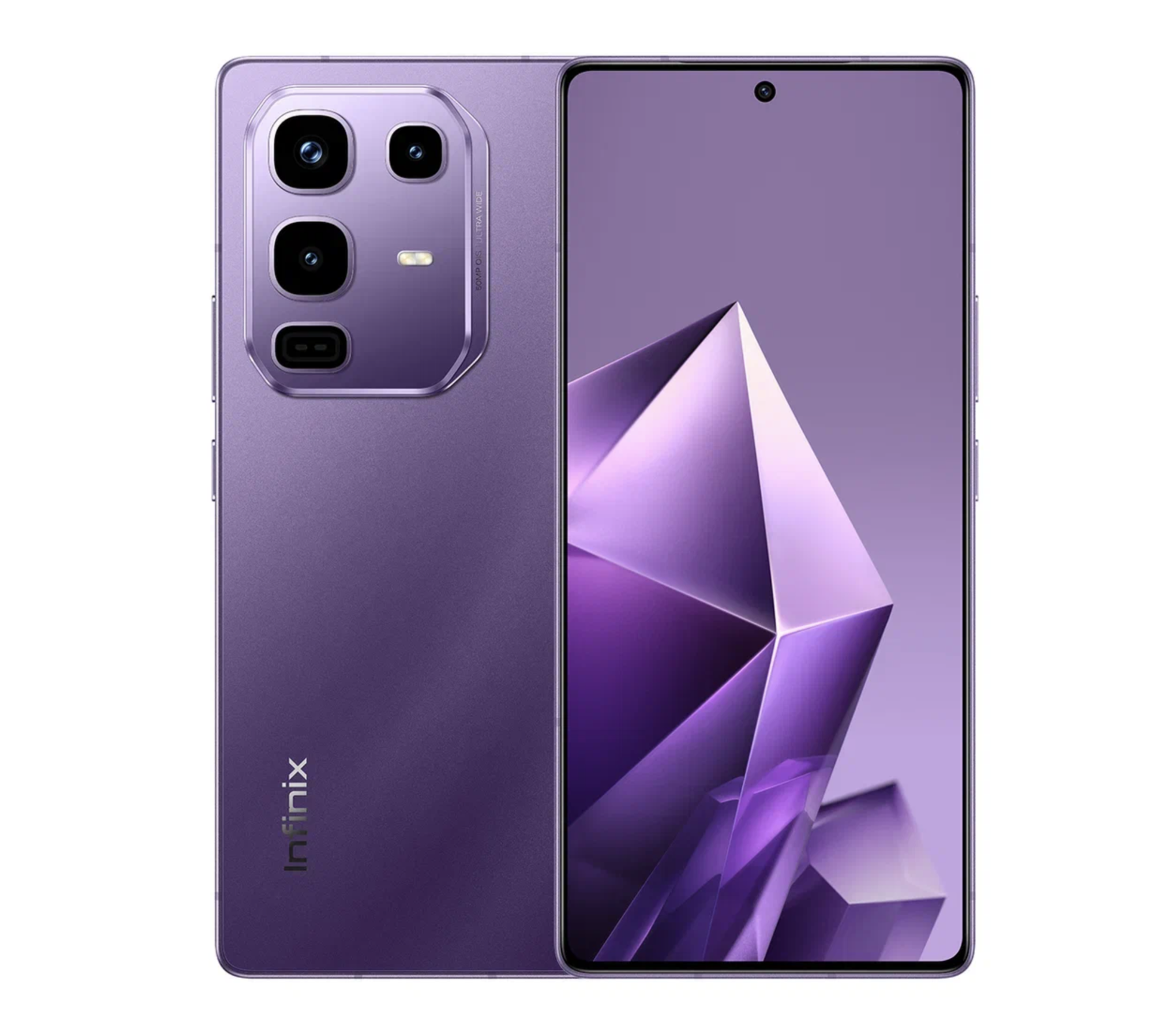 Смартфон Infinix Note 50 Pro представлен в стильном фиолетовом цвете и имеет степень защиты IP64.