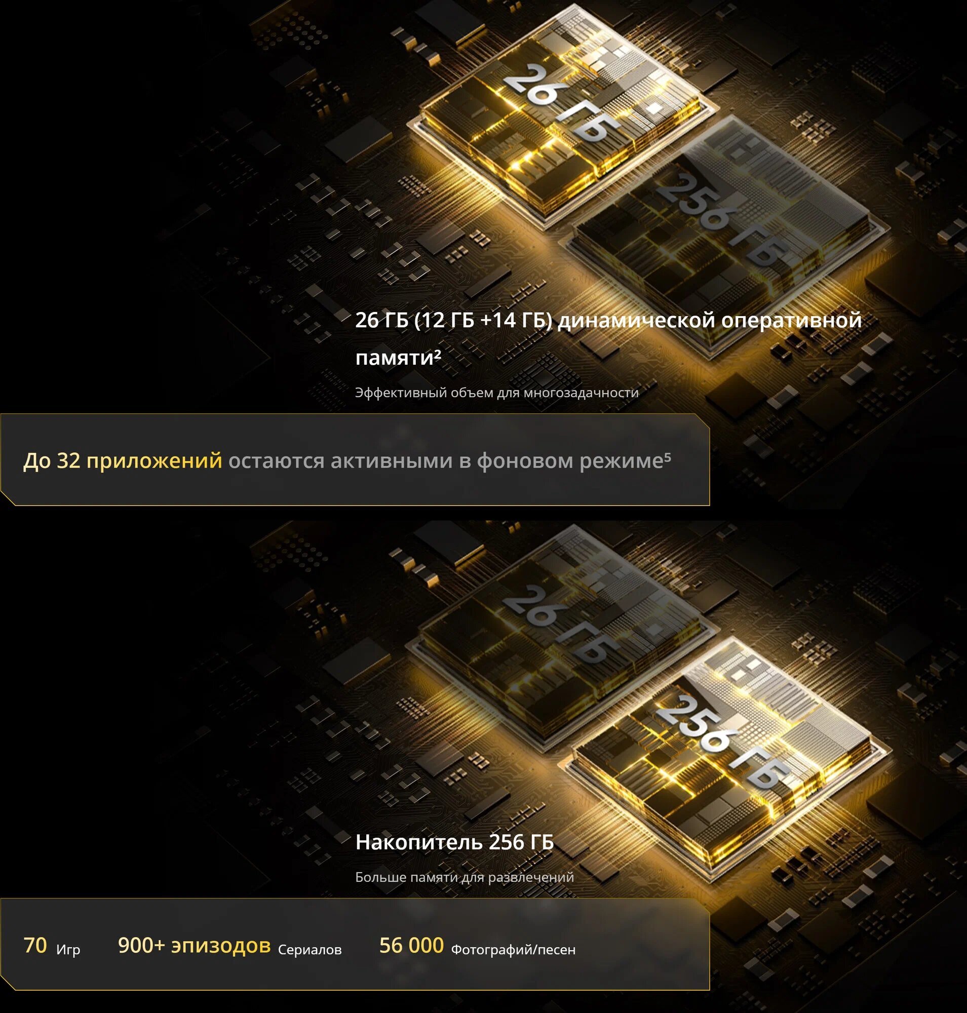 Устройство оснащено 12 ГБ оперативной памяти и 256 ГБ встроенной памяти, что позволяет хранить большое количество данных и приложений.