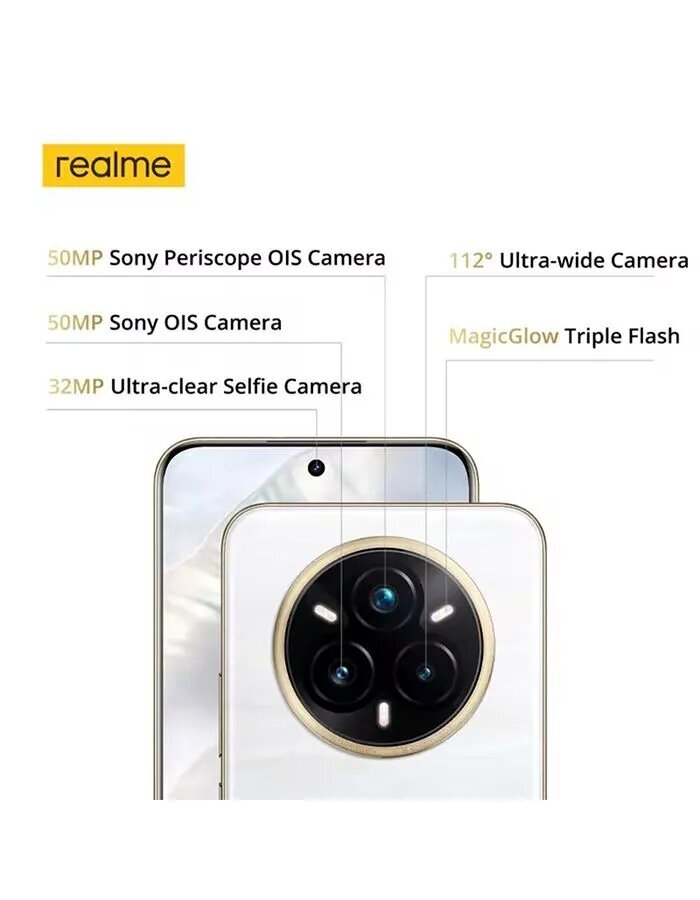 Смартфон Realme 14 Pro Plus 5G поставляется с операционной системой Android 15 и имеет белый цвет корпуса. Версия Ростест (EAC) гарантирует качество и надежность устройства.