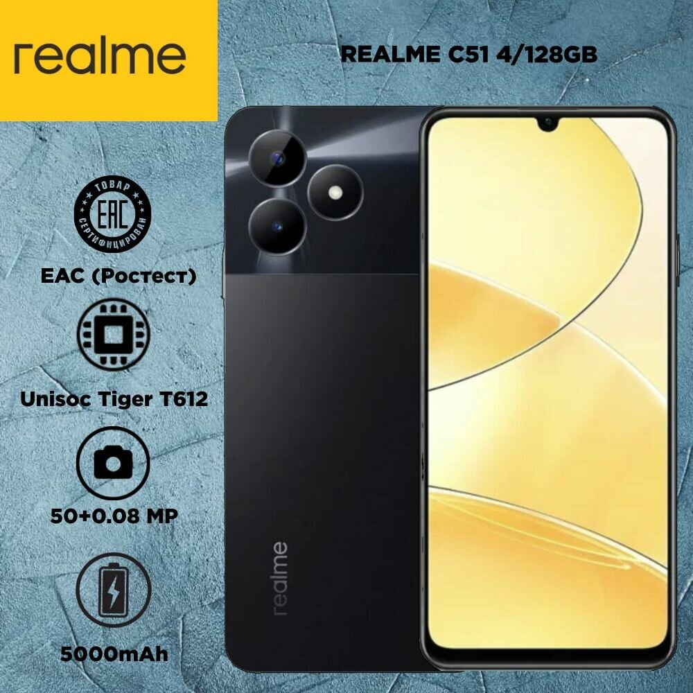 Смартфон realme C51 4/128 ГБ RU, Dual nano SIM, черный