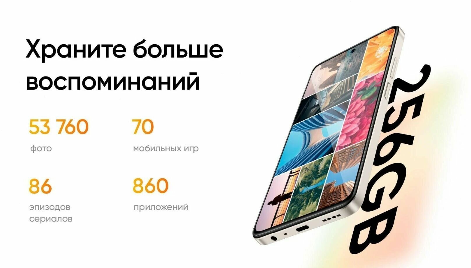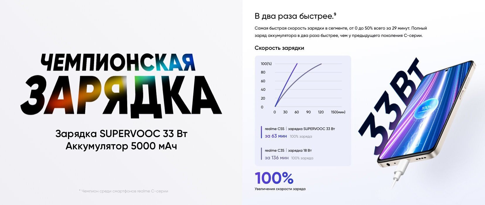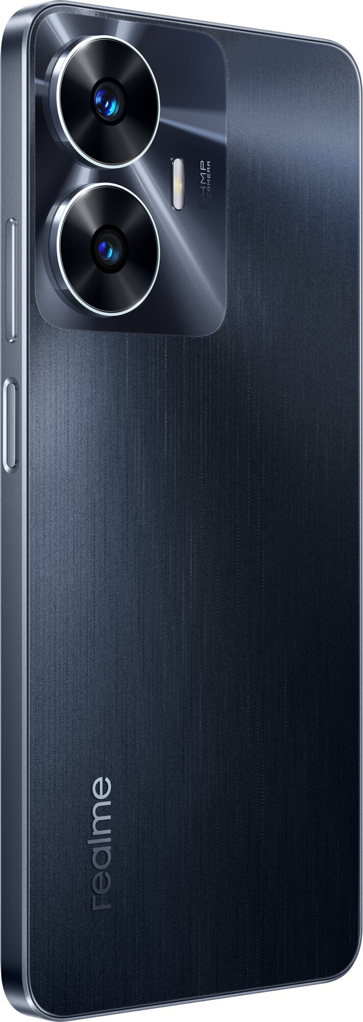 Описание Realme C55 8/256GB Чёрный Стильный смартфон с хорошей камерой, большим объемом памяти и быстрой зарядкой. Без проблем справляется с повседневными и игровыми задачами благодаря шустрому процессору. Тонкий и легкий, работает под управлением оболочки UI 4.0 на базе Android 13 и не вызовет трудностей с освоением. Сторонники классики оценят наличие стандартного разъема для наушников 3.5 мм. Стиль и комфорт Элегантный дизайн с многослойным градиентом на задней крышке выделяет смартфон Realme C55 среди конкурентов и заявляет об изысканном вкусе его владельца. Небольшой вес — менее 190 г и толщина менее 8 мм делают использование устройства удобным даже одной рукой, несмотря на большую диагональ экрана 6.72 дюйма. Частота обновления дисплея 90 Гц позволит получить четкую картинку без разрывов даже в динамичных сценах игр и фильмов, обеспечив комфорт для глаз. Плавная работа За быстродействие смартфона отвечают два процессора: центральный MediaTek Helio G88 и графический ARM Mali-G52. Они обеспечивают быструю обработку информации при запуске приложений, игр, создании и редактировании фотографий и видео. За одновременную работу без зависаний сразу нескольких программ отвечают 8 ГБ оперативной памяти, которую при необходимости можно увеличить за счет объема внутреннего хранилища. Емкость последнего — 256 ГБ. Хватит для установки десятков приложений, хранения сотен музыкальных треков и фотографий. Объем постоянной памяти можно расширить за счет использования SD-карты емкостью до 1 ТБ. Автономность и безопасность Емкость аккумулятора 5 000 мАч в совокупности с энергоэффективностью процессора обеспечит автономную работу смартфона на срок более суток. В комплекте блок питания на 33 Вт, который быстро восполнит запас энергии, если смартфон разрядился. Чтобы зарядить гаджет с 0 до 50 % через разъем Type-C, потребуется менее получаса. Предусмотрен ультраэкономный режим Ultra Saving Mode, продлевающий срок службы устройства при низком заряде. Датчик распознавания отпечатка пальца вмонтирован в кнопку блокировки на торце смартфона. Легкое касание клавиши мгновенно открывает доступ к функциям. Каждое мгновение запомнится Отдельного внимания заслуживает блок камер с разрешением основной 64 Мп. Сенсор увеличенного размера и интеллектуальные алгоритмы позволят получить фотографии высокой детализации с естественной цветопередачей. Даже сделанные в темноте кадры характеризуются достойными яркостью и контрастностью. Камера дополнена технологиями, позволяющими распознавать людей, автоматически наводить фокус, размывать задний план при необходимости. Можно создавать портреты, где объект остается цветным, а фон — черно-белым. Функция Dynamic Image Snapshot поможет повысить четкость фото, сделанных в движении. Фронтальная камера на 8 Мп подойдет для создания ярких портретов, а встроенные бьютификаторы позволят подчеркнуть индивидуальность. Важные дополнения Если текущей громкости динамика Realme C55 окажется недостаточно, то ее можно увеличить вдвое за счет технологии UltraBoom Speaker. Удачное расположение модуля бесконтактной оплаты NFC повысит точность считывания из любого положения при поднесении аппарата к терминалу. Сразу три слота для карт не потребуют выбирать между установкой двух SIM или карты памяти.