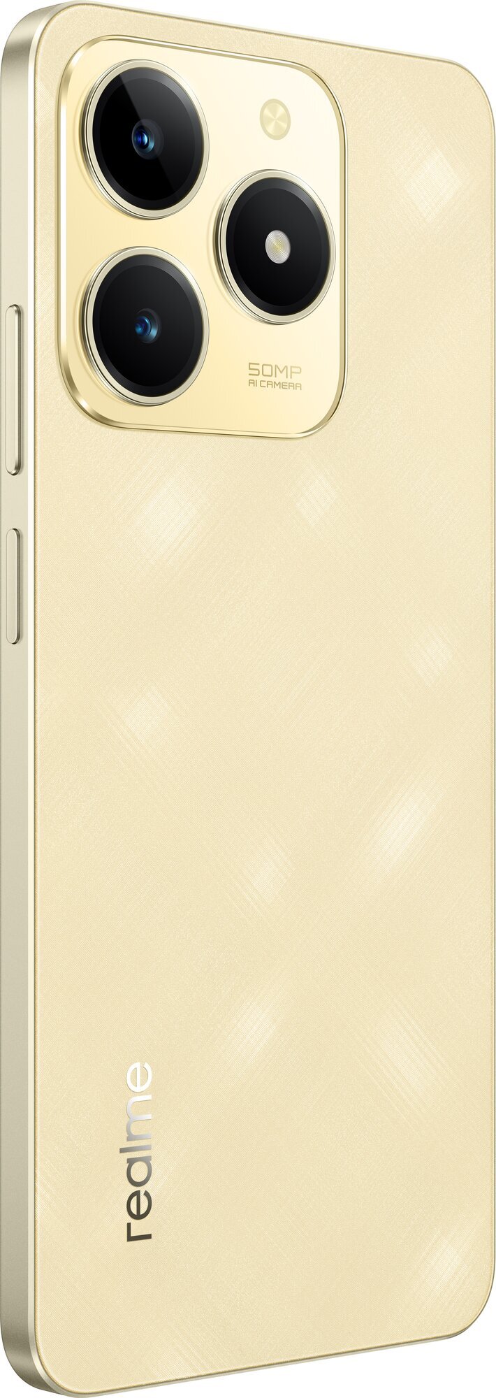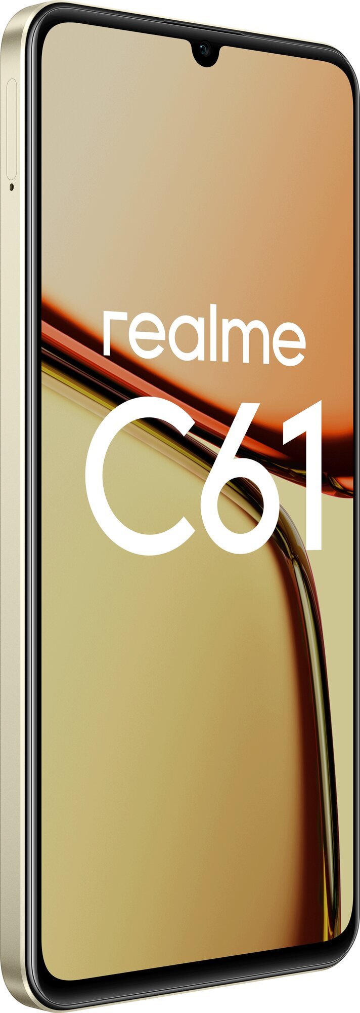 Телефон realme C61 8/256 ГБ RU имеет золотистый цвет и блестящий золотой оттенок, что придает ему стильный и современный вид.