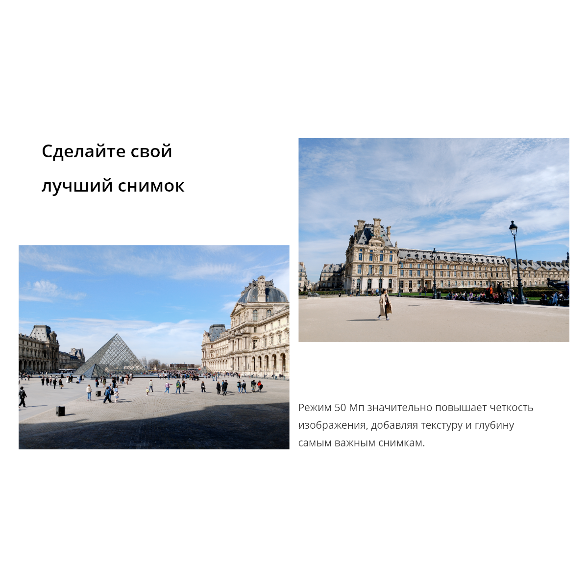 50-мегапиксельная AI-камера делает ваши снимки четкими и детализированными, сохраняя естественную текстуру и глубину.
