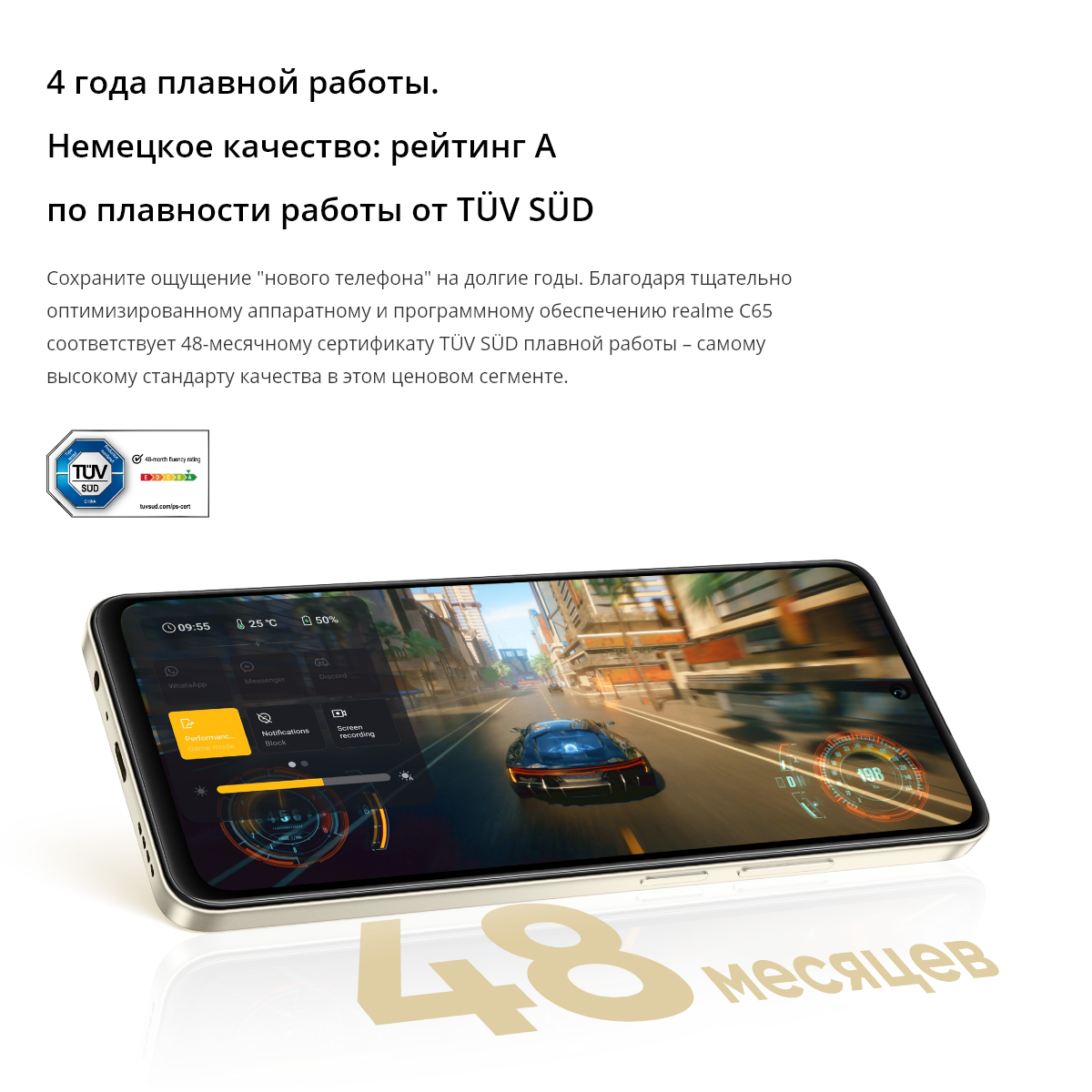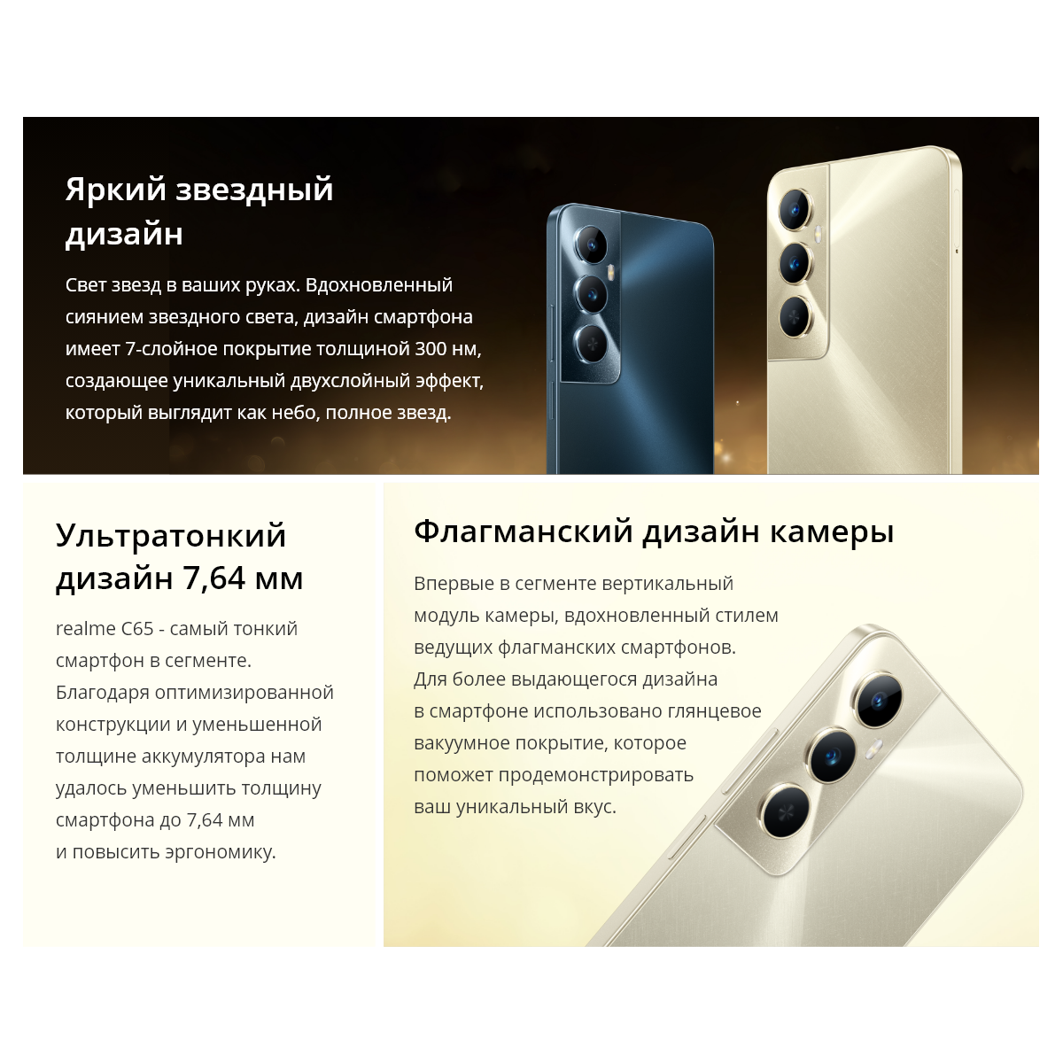 Элегантный дизайн Realme C65 - самый тонкий телефон в своем сегменте.