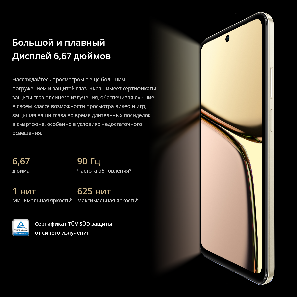 Большой дисплей с частотой 90 Гц обеспечивает более плавное и приятное визуальное восприятие.