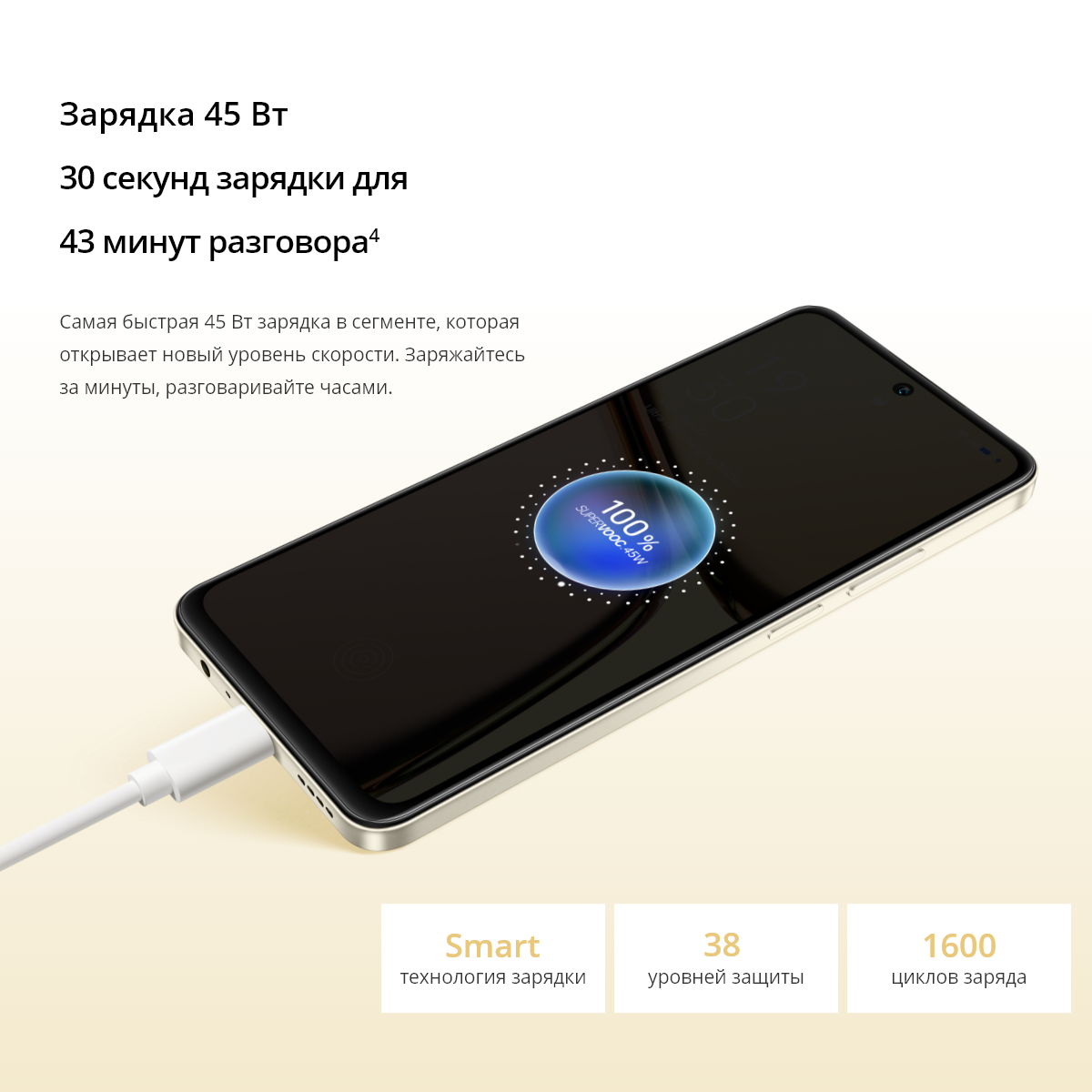 Аккумулятор емкостью 5000 мА*ч и самая быстрая в сегменте зарядка мощностью 45 Вт открывают для вас еще больше возможностей для организации своего дня. Пользуйтесь всеми функциями своего смартфона без ограничений и легко заряжайте его до 50% всего за 30 минут.