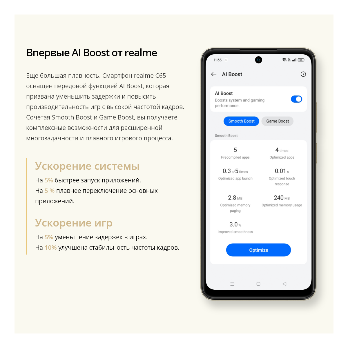 Смартфон Realme C65 - это современное устройство, которое сочетает в себе функциональность, надежность и комфорт в использовании.
