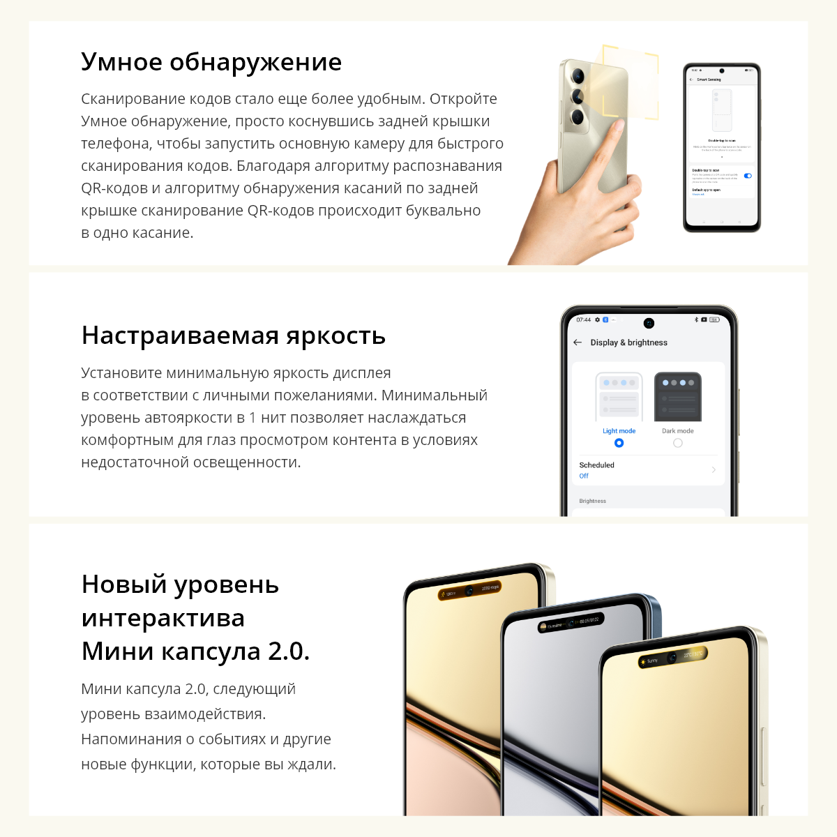 Управлять телефоном стало еще проще благодаря новым возможностям системы realme UI 5.0. Используйте бесконтактные жесты с Airless Gestures AI и область уведомлений Mini Capsule 2.0.