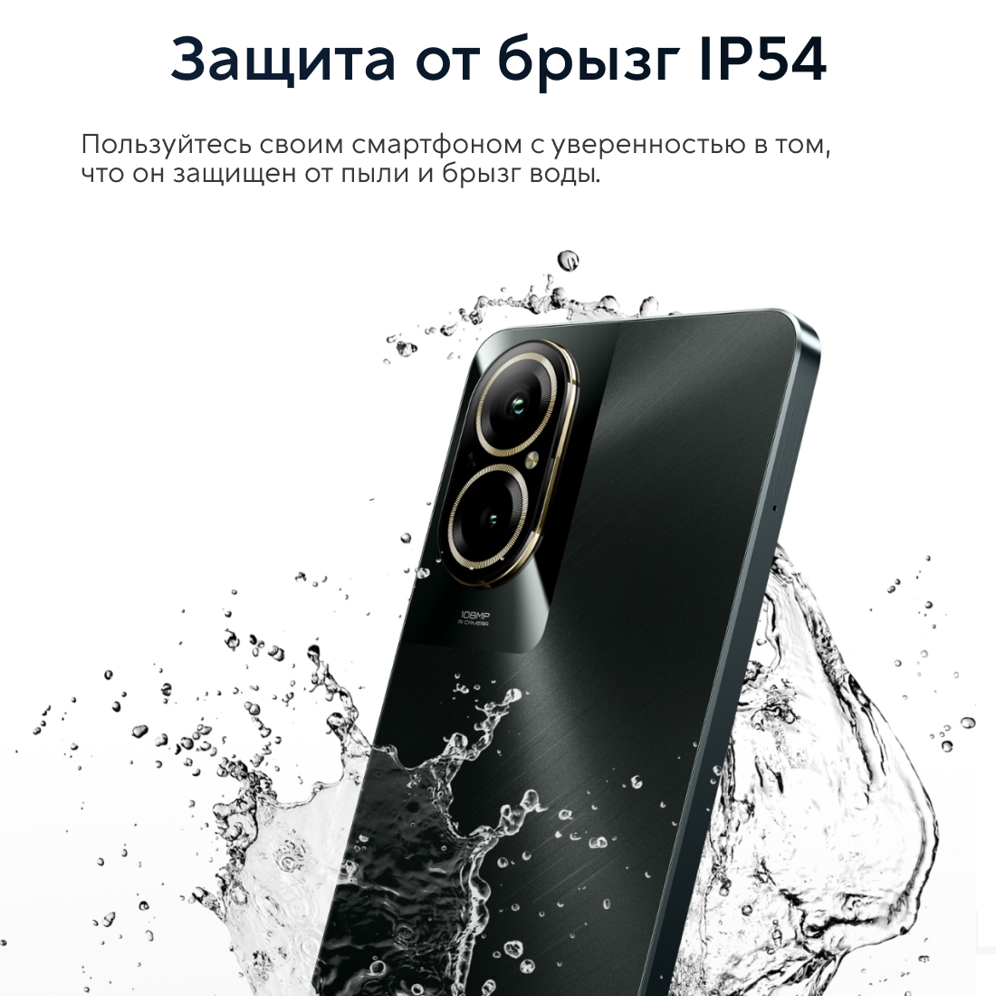 Телефон работает на базе Android 14 с фирменной оболочкой realme UI, что обеспечивает удобство и гибкость использования. Защита IP54 гарантирует безопасность устройства от пыли и брызг.