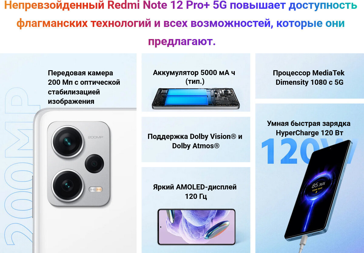 Смартфон Redmi Note 12 Pro Plus 5G 8/256 ГБ Global Version – это современное устройство от известного бренда Xiaomi, которое сочетает в себе передовые технологии и стильный дизайн.