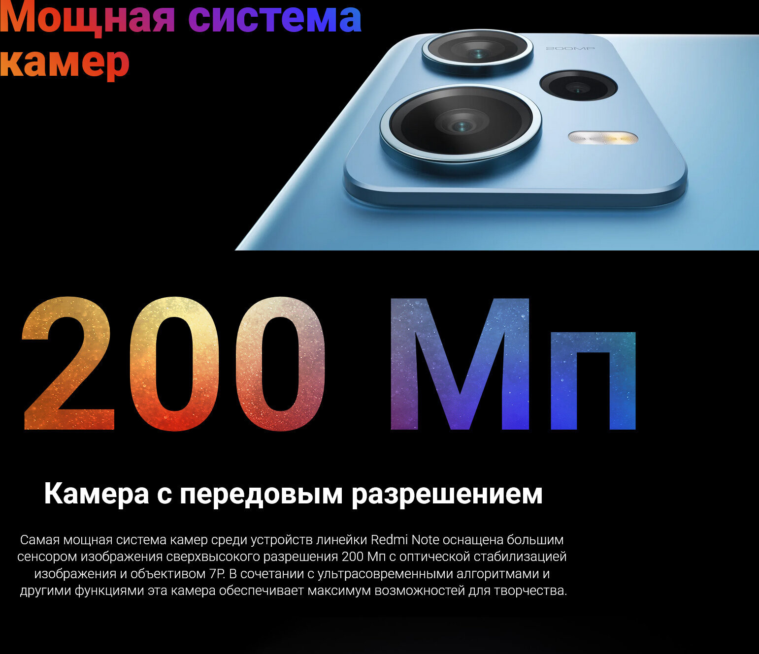 Смартфон оснащен трехмодульной оптикой с разрешением матрицы 200 Мп, что гарантирует высокую детализацию каждого кадра. Это позволяет делать качественные фотографии и снимать видео в формате 4K.