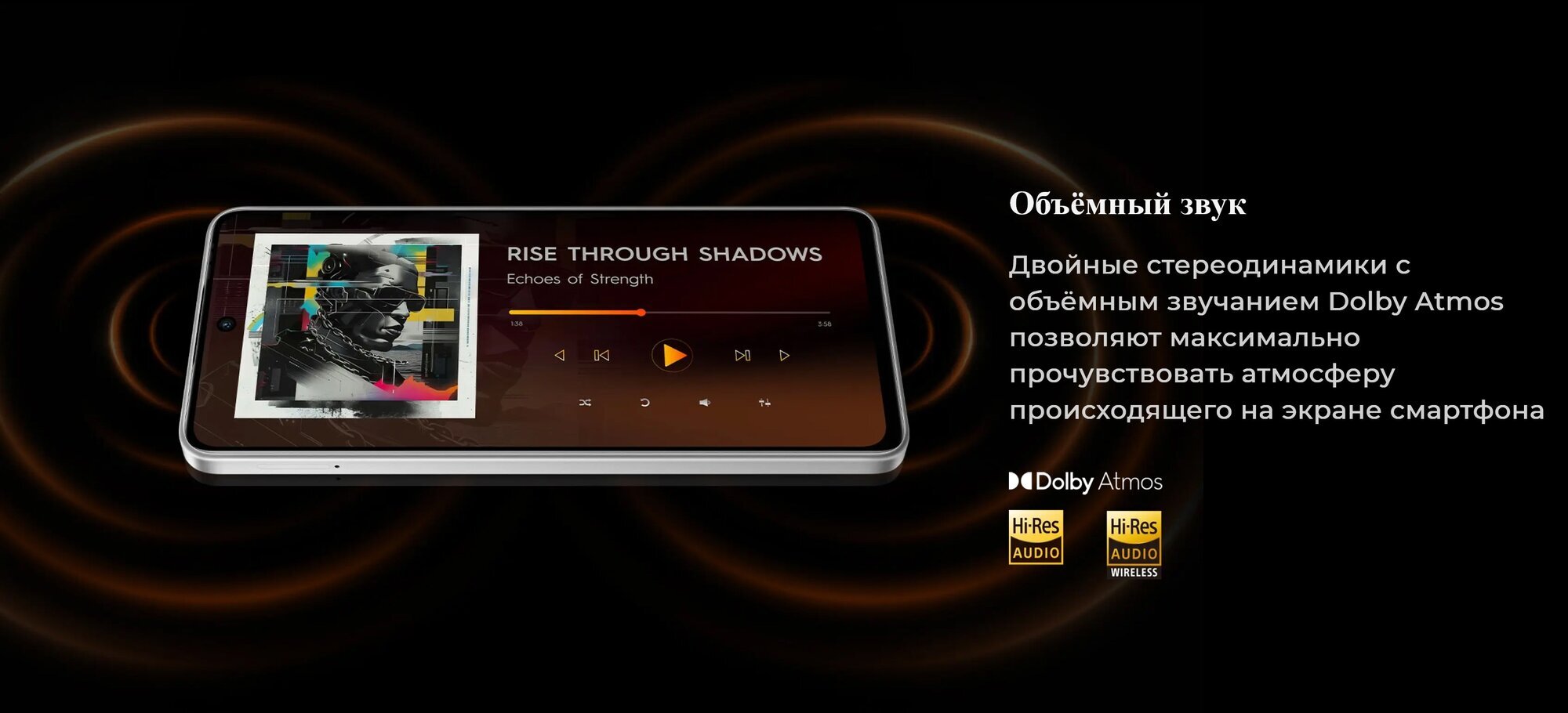 Смартфон получил IPS-экран диагональю 6.78″ с частотой обновления 120 Гц и разрешением 2460x1080 пикселей. Стереодинамики с объемным звуком Dolby Atmos создают эффект полного погружения в просматриваемый контент.