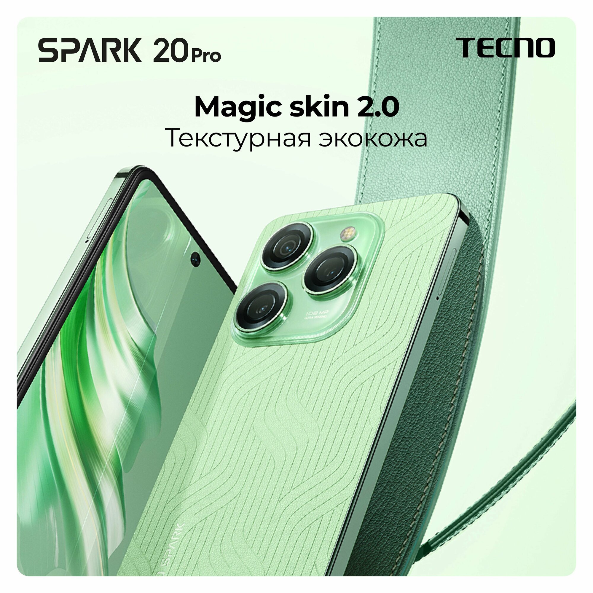 Смартфон TECNO Spark 20 Pro — устройство бюджетного сегмента, отличающееся хорошей производительностью, громким звуком и яркой картинкой. Габариты гаджета позволяет удобно держать его в ладони при повседневном использовании. IPS-матрица экрана с разрешением FullHD+ (2460х1080 точек) и размером 6,78 дюймов имеет частоту обновления кадров до 120 Гц, что обеспечивает комфортное использование при играх, сёрфинге в интернете и просмотре видеоконтента. Функциональность Основная фотокамера с разрешением 108 Мп имеет в комплекте также вспомогательные специальные датчики для работы в различных режимах фото- и видеосъёмки. У селфи-камеры разрешение равно 32 Мп. Сканер отпечатка пальца находится на боковой части корпуса. Аппаратная «начинка» смартфона основывается на использовании восьмиядерного процессора на чипсете MediaTek Helio G99. 12 Гб ОЗУ и встроенное хранилище памяти на 256 Гб гарантируют возможность хранения большого объёма пользовательского контента и приложений, а также быстрый запуск приложений и стабильную работу со множеством открытых вкладок. Внутреннюю память можно увеличить за счёт использования карты microSD объемом до 1 Тб. Ёмкий аккумулятор на 5000 мАч обеспечивает работу девайса в режиме полноценной нагрузки в течение всего дня.