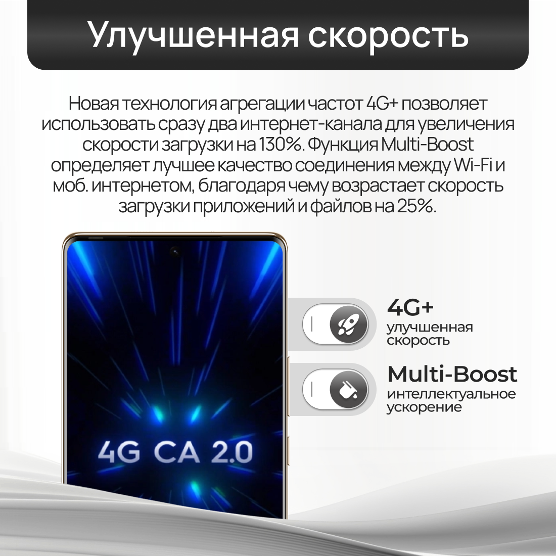 Процессор MediaTek Helio G99, память 256 ГБ и энергоемкий аккумулятор 5000мАч обеспечивают улучшенную производительность и быструю зарядку 33Вт.