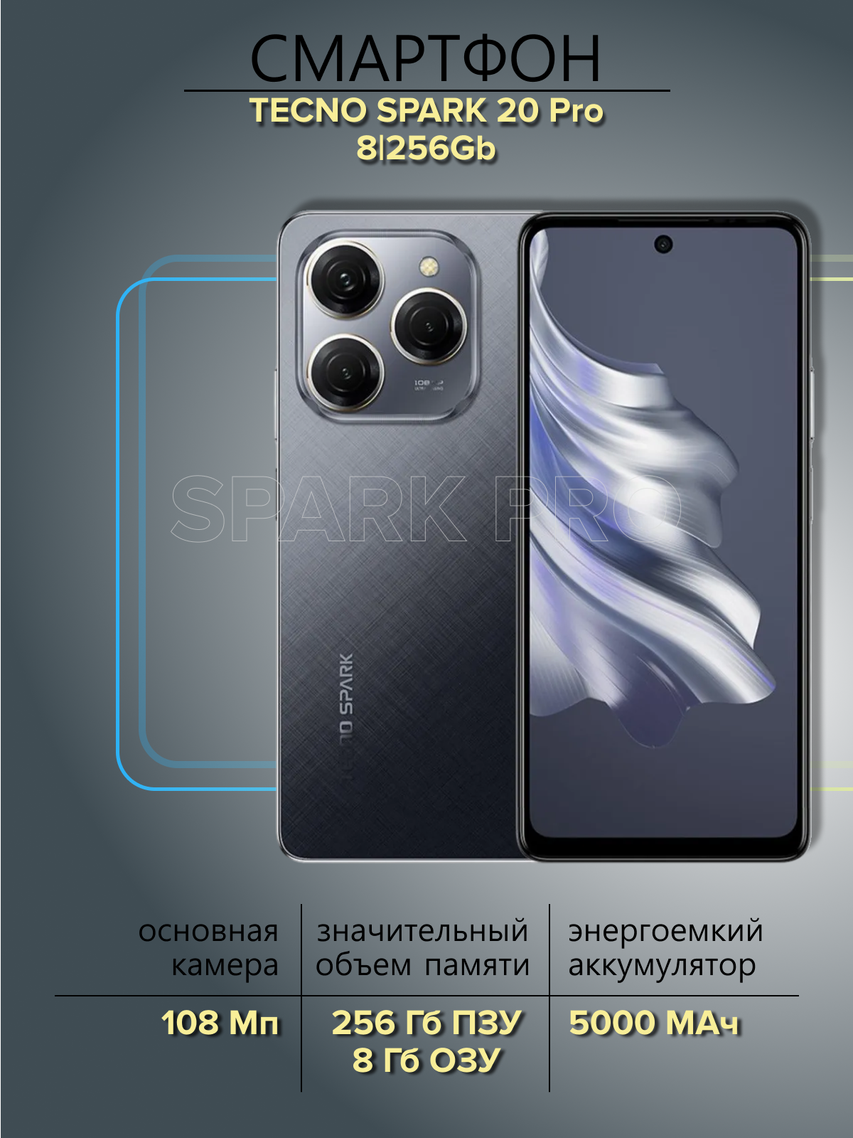 Смартфон TECNO Spark 20 Pro 8/256 ГБ RU, Dual nano SIM, Moonlit Black