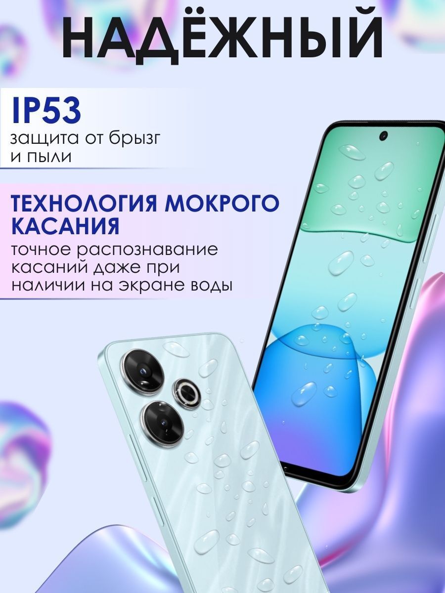 Смартфон Redmi 13 имеет множество преимуществ. Основная камера на 108 Мп со встроенным зумом позволяет трёхкратно увеличивать изображение без потери качества. Иммерсивный 6,79-дюймовый дисплей с адаптивной синхронизацией и частотой 90 Гц обеспечивает превосходное качество просмотра. Мощный восьмиядерный процессор Helio G91 Ultra повышает производительность и функциональность, обеспечивая комфортную и бесперебойную работу как при решении повседневных задач, так и во время игр. Аккумулятор ёмкостью 5030 мАч и быстрая зарядка 33 Вт. Поддержка NFC, защита корпуса по стандарту IP53, разъём для наушников, боковой сканер отпечатков пальцев, ИК-порт, Type-C и другие функции.