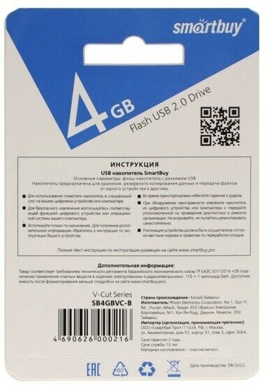 USB накопитель незаменимый помощник хранения Вашей личной информации. Данная модель популярна и востребована на рынке USB флешек. Smartbuy V-Cut (SB4GBVC-B) обладает объемом в 4 Гб и интерфейсом подключения USB 2.0.